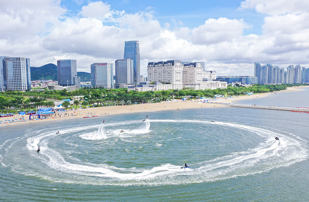 厦门滨海水运动度假区于2023年7月1日正式开园。除了浪漫丁坝、彩虹跑道、幸福之门、潮汐公园、美峰天桥和浪漫风车的“网红”打卡点,厦门滨海水运动度假区重点打造潮玩水运动产品体系,从国内外引入赛道摩托艇、尾波冲浪、彩虹拖伞、动力滑板、水上飞人、动感飞艇、帆船、滑水、小飞鱼、香蕉船和浪漫线观光游等十余种娱乐项目,提供“水上、陆地、空中”三栖玩法选择,不论是好奇心十足的玩水爱好者,还是勇于挑战的“极限达人”,都能在这里纵享欢乐,感受绝佳的亲水体验和意外惊喜。